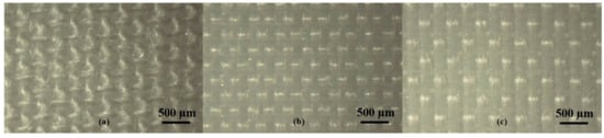 Optical images of (a) cotton, (b) nylon, and (c) polyester fabrics used to estimate the warp and weft thread counts in a 1 × 1 cm area.