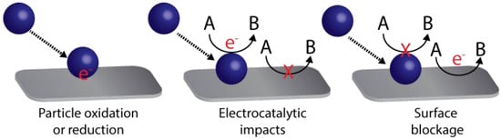 Conventional analytical methods usually provide average information about the properties of an ensemble of entities, which is a perfectly valid vision for many studies. These techniques assume that all entities are identical, but many systems present heterogeneities or stochastic events that could govern the average response. In these methods, the properties of individual entities are masked, averaged out or invisible, missing important information that could be relevant in many (bio)chemical processes. Single-entity detection approaches [1,2,3,4] would allow for the study of properties of individual entities providing richer information, capable of revealing heterogeneities and analysis of stochastic events within different systems. There are different types of single-entities that can be considered from a chemical point of view, the dimensional scale being the most important factor. The atom would be the ultimate chemical entity, with molecules and particles of larger dimensional scale. From a biochemical point of view, biomolecules such as proteins and nucleic acids and other entities such as vesicles, viruses or cells can be considered. Combining single-entity detection approaches with biochemical matter in order to achieve single-(bio)entity sensing and imaging could make a tremendous impact: Moreover, it would open up different new horizons in the study of fundamental biomolecular processes, diagnostic capabilities of diseases at an early stage or even a deeper understanding of many pathogenesis processes, among many other possible applications. Heterogeneity is prevalent in biological systems ranging from molecules [5] to cells [6], tissues, organs and organisms [7]. For instance, heterogeneous behaviour plays an important role among cancerous cells within the same tumour [8] or different molecular structures could be observed for the same protein as a result of translation or transcription errors [5]. However, this information is neglected with conventional average measurements and may have important implications in different processes. The significance of this field can also be readily understood since the detection of single entities is the ultimate sensitivity limit (for that specific entity). In general, single-entity methods provide a unique way to see and address different biological issues of interest for the life sciences.