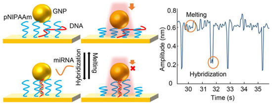 Another recent trend in nanopore sensing is the use of plasmonic nanopores and these systems have also been applied to nucleic acid detection. The optical excitation of the plasmonic nanopores can be used for controlling the local temperature and the translocation process [207]. In situ opening of nanopores in membranes by localised heating is another application of plasmonic nanopores, which can also be used for enabling high-sensitivity optical detection of single molecules [186,208] or for multifunctional detection by simultaneous recording optical and electric signals [208], which can increases the information obtained for the same molecule.