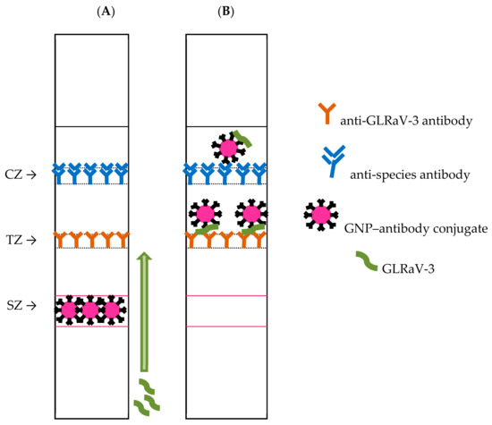 - Byzova, N.A.; Safenkova, I.V.; Chirkov, S.N.; Avdienko, V.G.; Guseva, A.N.; Mitrofanova, I.V.; Zherdev, A.V.; Dzantiev, B.B.; Atabekov, J.G. Interaction of plum pox virus with colloidal gold labeled antibodies and development of an immunochromatographic system for detection of the virus. Biochemistry (Moscow) 2010, 75, 1393–1403. [Google Scholar] [CrossRef] [PubMed]