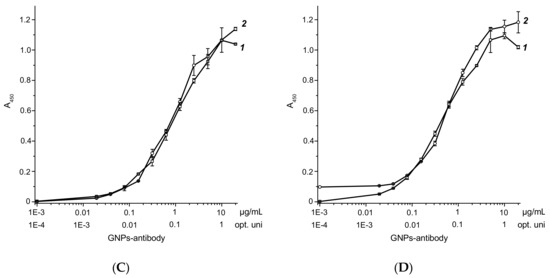 - Byzova, N.A.; Safenkova, I.V.; Slutskaya, E.S.; Zherdev, A.V.; Dzantiev, B.B. Less is more: A comparison of antibody—Gold nanoparticle conjugates of different ratios. Bioconj. Chem. 2017, 28, 2737–2746. [Google Scholar] [CrossRef] [PubMed]