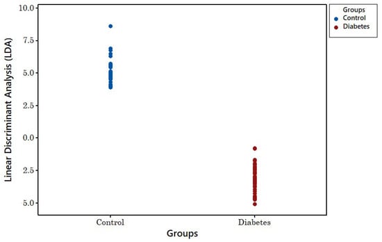 Figure 11 shows the linear discrimination analysis (LDA) result for the four-year-old samples. As can be seen, there is no clear separation between groups. Figure 12 shows the LDA method’s result for newer samples with less than 18 months of age. This shows clear separation between both groups.