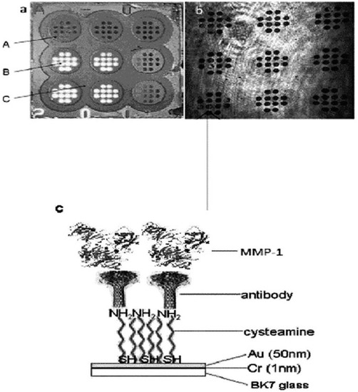 - Tokarzewicz, A.; Romanowicz, L.; Sveklo, I.; Gorodkiewicz, E. The development of a matrix metalloproteinase-1 biosensor based on the Surface Plasmon Resonance imaging technique. Anal. Methods 2016, 8, 6428–6435. [Google Scholar] [CrossRef]