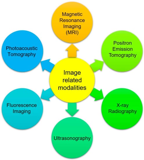 Tetrapyrrolic-based macrocyclic systems are getting more attention in biomedical applications due to their various advantageous features like low cytotoxicity in the absence of light, tunable photophysical properties, such as absorption and emission wavelength, superficial derivatization, and superior tumor uptake of these chemical entities [36]. The use of porphyrins and their metal derivatives in molecular imaging and biomedicine is an interdisciplinary field, and significant growth has been observed in this area in the 21st century. Over the last few decades, due to the development of imaging devices and instruments and chemistry of imaging probes, significant interest and growth have been observed in the field of in vivo medical imaging. Now a day’s medical imaging is taking benefits from numerous modalities as shown in Figure 3.