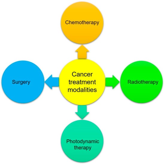Cancer is one the fastest-growing lethal diseases that human beings are facing all over the globe, and is supposed to be the second leading cause of death, having been responsible for 15% of all deaths [56,57]. The formation and growth of abnormal cells in the body may be initiated by various factors such as inherited mutations, chemicals, harmful radiations, weakness of immune system etc. [58,59]. The fundamental cancer treatment modalities are shown in Figure 5. However, all these treatments are associated with severe side effects to the patients and lengthy recovery times.