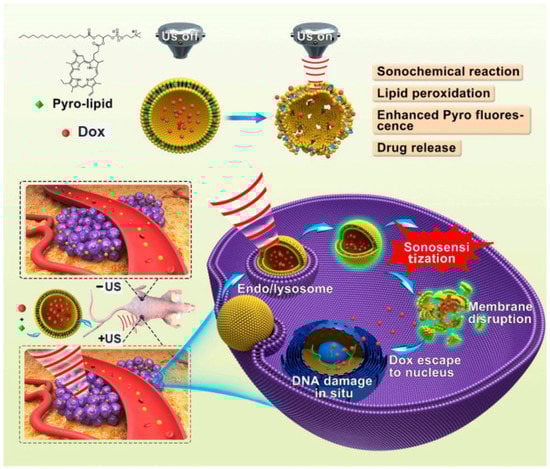 Representation of sonoactivatable, Dox-loaded porphyrin-phospholipid-liposome (Dox-pp-lipo) for anti-tumor treatment. Reproduced from Wang et al. [67], with permission from Elsevier.