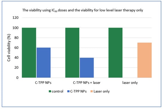 The activity of the C-TPP NPs against Caco 2 cells in the presence and the absence NIR. The cell viability against low level laser therapy only.