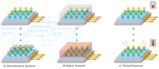 According to the transduction method, biosensors can be categorized into electrochemical, optical and thermal [,].