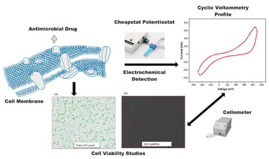 There are essentially two pathways (lipid-mediated and diffusion porins) through which both hydrophobic and hydrophilic antimicrobials elicit their potency. The degree of permeation of the cell membrane has a major impact on the redox activity. In addition, the presence of a hydrophobic drug within the complex architecture of the membrane induces pore formation and enhances ionic flow, which can be detected electrochemically. Non-membrane-mediated drugs diffuse freely through the membrane and may not necessarily destabilize the membrane architecture; therefore, the ionic flow that can be captured by electrochemical detection techniques is limited.
