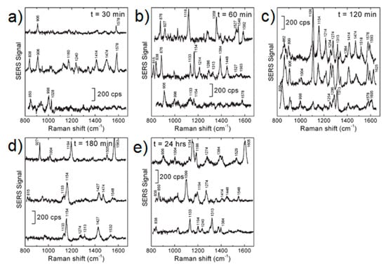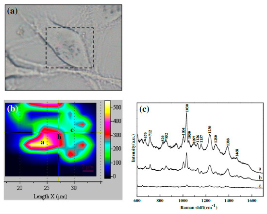 - Kneipp, K.; Haka, A.S.; Kneipp, H.; Badizadegan, K.; Yoshizawa, N.; Boone, C.; Shafer-Peltier, K.E.; Motz, J.T.; Dasari, R.R.; Feld, M.S. Surface-Enhanced Raman Spectroscopy in Single Living Cells Using Gold Nanoparticles. Appl. Spectrosc. 2002, 56, 150–154. [Google Scholar] [CrossRef]