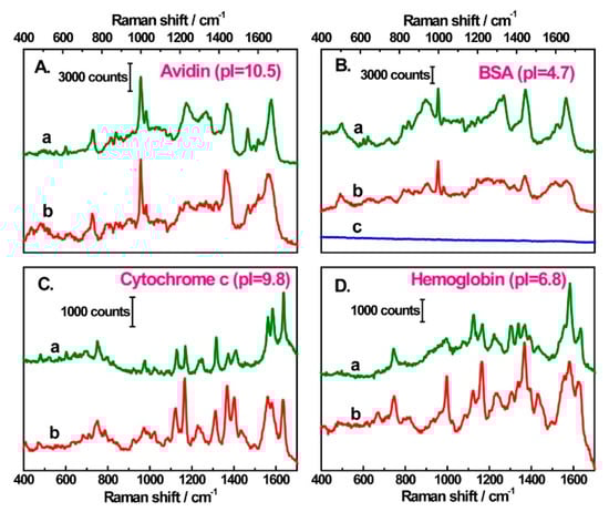 - Feng, M.; Tachikawa, H. Surface-enhanced resonance Raman spectroscopic characterization of the protein native structure. J. Am. Chem. Soc. 2008, 130, 7443–7448. [Google Scholar] [CrossRef]