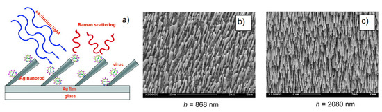 - Shanmukh, S.; Jones, L.; Driskell, J.; Zhao, Y.; Dluhy, R.; Tripp, R.A. Rapid and sensitive detection of respiratory virus molecular signatures using a silver nanorod array SERS substrate. Nano Lett. 2006, 6, 2630–2636. [Google Scholar] [CrossRef]