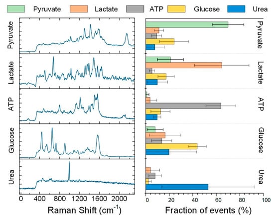 - Li, M.; Zhang, J.; Suri, S.; Sooter, L.J.; Ma, D.; Wu, N. Detection of adenosine triphosphate with an aptamer biosensor based on surface-enhanced Raman scattering. Anal. Chem. 2012, 84, 2837–2842. [Google Scholar] [CrossRef] [PubMed]