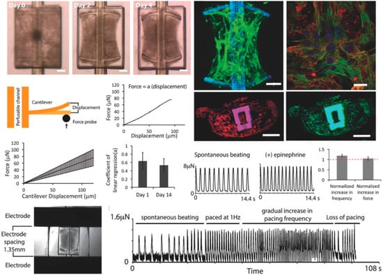 - Caluori, G.; Pribyl, J.; Pesl, M.; Jelinkova, S.; Rotrekl, V.; Skladal, P.; Raiteri, R. Non-invasive electromechanical cell-based biosensors for improved investigation of 3D cardiac models. Biosens. Bioelectron. 2019, 124–125, 129–135. [Google Scholar] [CrossRef] [PubMed]