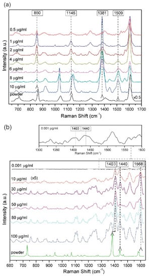 - Witkowska, E.; Szymborski, T.; Kamińska, A.; Waluk, J. Polymer mat prepared via Forcespinning™ as a SERS platform for immobilization and detection of bacteria from blood plasma. Mater. Sci. Eng. C 2017, 71, 345–350. [Google Scholar] [CrossRef]