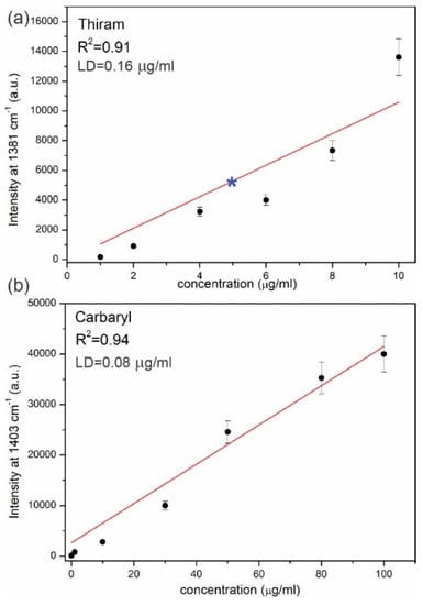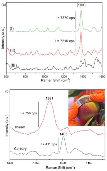 - Xu, M.L.; Gao, Y.; Han, X.X.; Zhao, B. Detection of Pesticide Residues in Food Using Surface-Enhanced Raman Spectroscopy: A Review. J. Agric. Food Chem. 2017, 65, 6719–6726. [Google Scholar] [CrossRef] [PubMed]