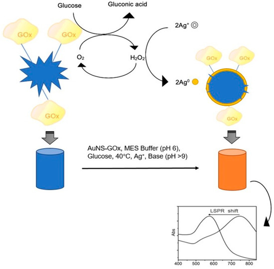 - Gao, Y.; Wu, Y.; Di, J. Colorimetric detection of glucose based on gold nanoparticles coupled with silver nanoparticles. Spectrochim. Acta Part A Mol. Biomol. Spectrosc. 2017, 173, 207–212. [Google Scholar] [CrossRef] [PubMed]