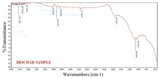 Finally, the peaks between 850 and 630 cm−1 correspond to aromatic C–H stretching vibrations that indicate the presence of adjacent aromatic hydrogens in biochar samples [25].