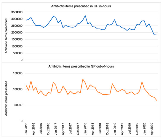 The aim of this study is to investigate any changes in OOH antibiotic use prior to and during England’s first wave of the COVID-19 pandemic.