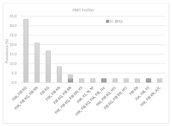 Prevalence of PBRT profiles in K. pneumoniae (Kp) and E. coli (Ec) strains.