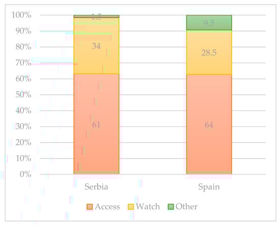 - Hsia, Y.; Sharland, M.; Jackson, C.; Wong, I.C.K.; Magrini, N.; Bielicki, J.A. Consumption of Oral Antibiotic Formulations for Young Children According to the WHO Access, Watch, Reserve (AWaRe) Antibiotic Groups: An Analysis of Sales Data from 70 Middle-Income and High-Income Countries. Lancet Infect. Dis. 2019, 19, 67–75. [Google Scholar] [CrossRef]