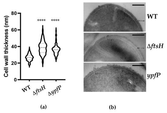 2.6. The ftsH and ypfP Mutations Do Not Affect Autolysis Activity But Increase the Cell Wall Thickness