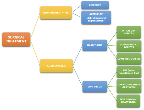 The need for surgery decreases in peri-implantitis with anti-infective chemotherapy and mechanical debridement. A meta-analysis concluded that the effective management of peri-implantitis improves the retention of dentition throughout the lifetime [22]. Management of plaque biofilm in peri-implant mucositis makes it reversible. However, this approach could be revealed to be insufficient in more severe cases, and other nonsurgical procedures or surgery become treatments of choice [16] (Scheme 1 and Scheme 2).