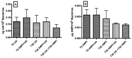 3.4. Ursolic Acid Did Not Accumulate in S. aureus and Did Not Increase the Accumulation of Ampicillin