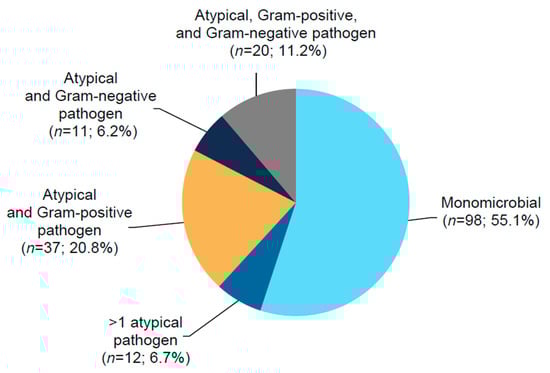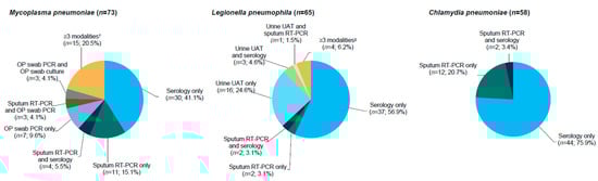 - Gramegna, A.; Sotgiu, G.; Di Pasquale, M.; Radovanovic, D.; Terraneo, S.; Reyes, L.F.; Vendrell, E.; Neves, J.; Menzella, F.; Blasi, F.; et al. Atypical pathogens in hospitalized patients with community-acquired pneumonia: A worldwide perspective. BMC Infect. Dis. 2018, 18, 677. [Google Scholar] [CrossRef] [PubMed]