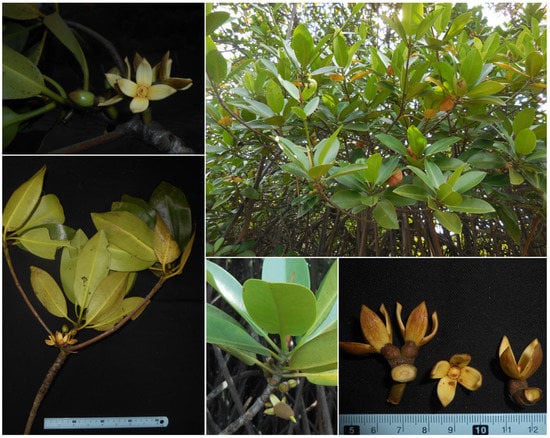 - Takayama, K.; Tateishi, Y.; Kajita, T. Global phylogeography of a pantropical mangrove genus Rhizophora. Sci. Rep. 2021, 11, 7228. [Google Scholar] [CrossRef]