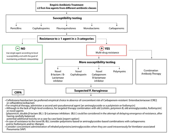 Treatment strategy for carbapenem-resistant P. aeruginosa isolates including future treatment options based on combinatorial antibody therapies [].