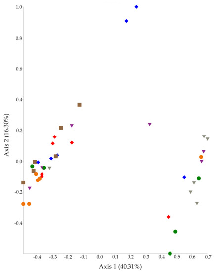 - Caporaso, J.G.; Kuczynski, J.; Stombaugh, J.; Bittinger, K.; Bushman, F.D.; Costello, E.K.; Fierer, N.; Gonzalez Peña, A.; Goodrich, J.K.; Gordon, J.I.; et al. QIIME allows analysis of high-throughput community sequencing data. Nat. Methods 2010, 7, 335–336. [Google Scholar] [CrossRef] [PubMed]