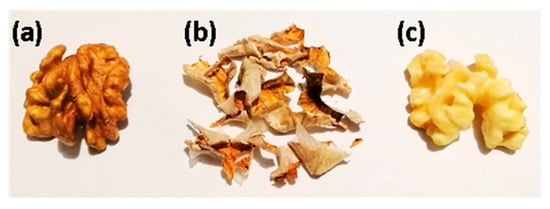 (a) Kernel; (b) pellicle; (c) kernel without the pellicle.