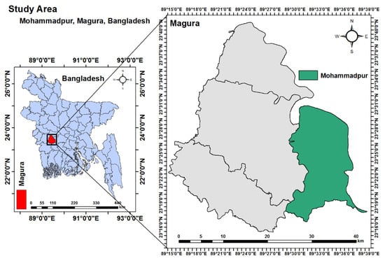 The present study was carried out in Baojani Baor within the Mohammadpur Upazila (23.4056° N, 89.5686° E) of the Magura district of Bangladesh (Figure 2) during the period of November 2019 to November 2020. The area was selected due to the abundance of wintering migratory birds in this area every year. Humans in the area typically work in agriculture or animal rearing. In addition, different poultry species are frequently available in the area.