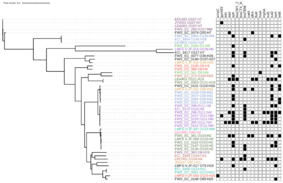 - Allen, K.J.; Laing, C.R.; Cancarevic, A.; Zhang, Y.; Mesak, L.R.; Xu, H.; Paccagnella, A.; Gannon, V.P.J.; Hoang, L. Characteristics of clinical Shiga toxin-producing Escherichia coli Isolated from British Columbia. BioMed Res. Int. 2013, 2013, 1–11. [Google Scholar] [CrossRef]