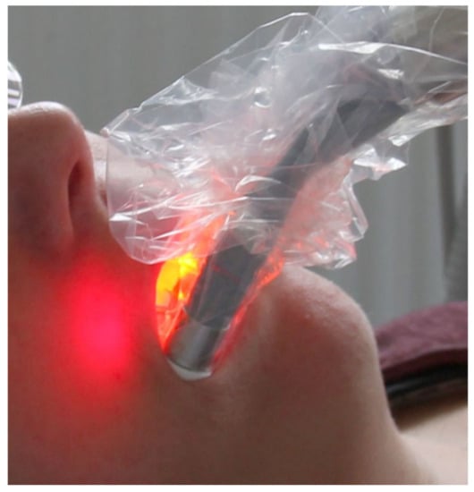 VIS + wIRA is a promising possibility with a high transgingival subcutaneous tissue penetration (2–3 cm), which allows for the exposure of the periodontal pockets [,,]. Besides, VIS in combination with wIRA has a low thermal surface load, allowing for the transport of high energy into tissues []. Furthermore, VIS + wIRA leads to an increase of the tissue temperature in the deep, oxygen partial pressure in the treated tissue and tissue perfusion, which also transports the warmth to the surrounding tissues, showing improved healing of chronic wounds after application and association with pain reduction [,].