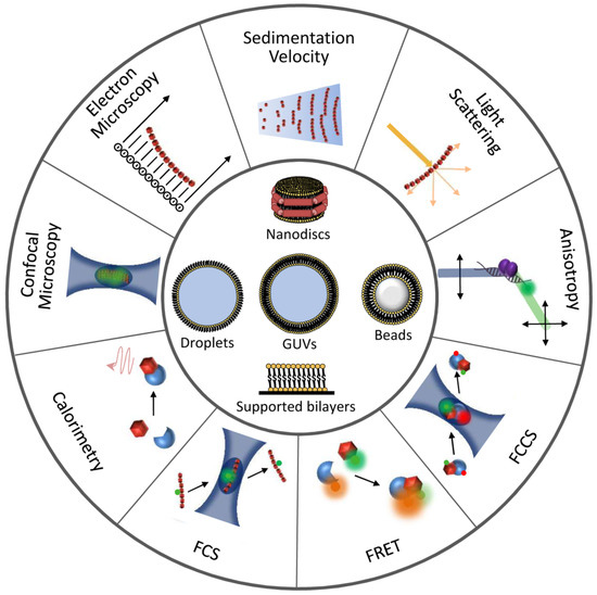 Illustration of techniques and reconstruction approaches useful for the detection and characterization of FtsZ interactions. Experimental approaches to study FtsZ homo- and hetero-association are represented at the outer circumference. Minimal membrane systems and cytomimetic platforms are shown at the center.