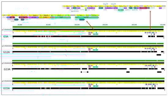 | G3A | ST-32 | IncFIB-like | - | gyrA D87Y | tet(A) | dfrA14 | sul1 | aph(4)-la, aadA1, aac(3)-IVa, aph(3′)-Ia |