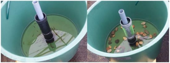 - Rodewald, P.; Hyvärinen, P.; Hirvonen, H. Wild origin and enriched environment promote foraging rate and learning to forage on natural prey of captive reared Atlantic salmon parr. Ecol. Freshw. Fish 2011, 20, 569–579. [Google Scholar] [CrossRef]