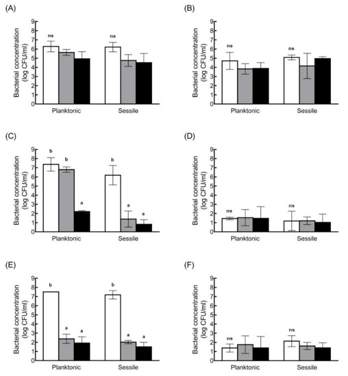 - Castro, M.G.; Icazatti, A.; Divizia, J.; Vega, A.E.; Cortiñas, T.I.; Stagnitta, P.V. Effect of sanitizers and glucose on Clostridium perfringens biofilm formation and growth. Int. J. Curr. Microbiol. Appl. Sci. 2016, 5, 210–223. [Google Scholar]