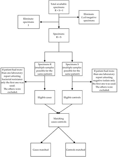 Flow diagram of included cases and controls. Abbreviations: R = 3GC-resistant specimens; S = 3GC-sensible specimens; I = 3GC-intermediate specimens.