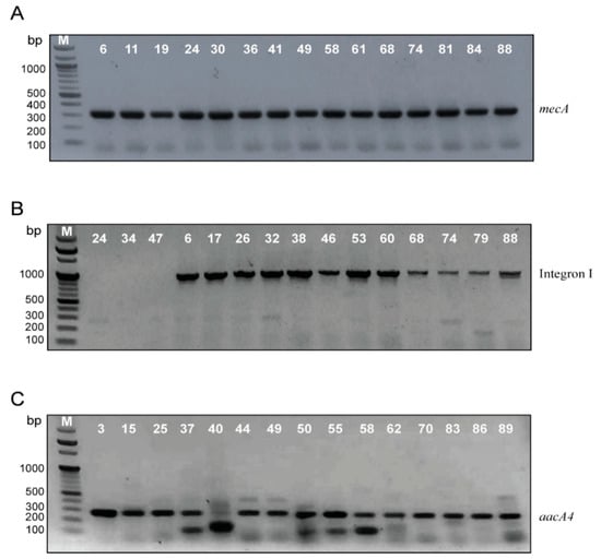 - Ren, C.; Zhao, Y.; Shen, Y. Analysis of the effect of integrons on drug-resistant Staphylococcus aureus by multiplex PCR detection. Mol. Med. Rep. 2013, 7, 719–724. [Google Scholar] [CrossRef] [PubMed]