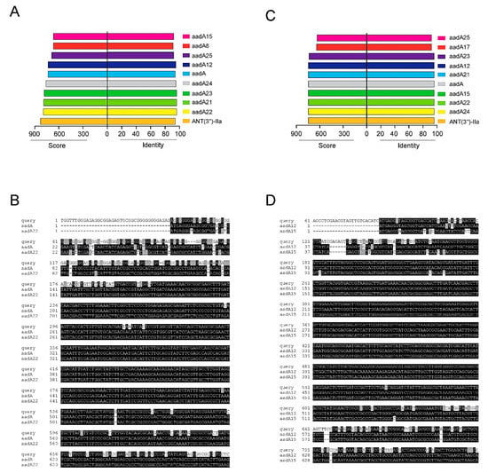 - Cameron, A.; Klima, C.L.; Ha, R.; Gruninger, R.J.; Zaheer, R.; McAllister, T.A. A novel aadA aminoglycoside resistance gene in bovine and porcine pathogens. mSphere 2018, 3, e00568-17. [Google Scholar] [CrossRef]