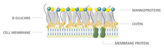 - Ruiz-Herrera, J.; Ortiz-Castellanos, L. Cell wall glucans of fungi. A review. Cell Surf. 2019, 5, 100022. [Google Scholar] [CrossRef]