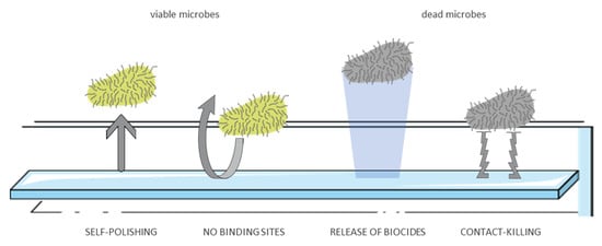 - Tiller, J.C. Antimicrobial surfaces. Adv. Polym. Sci. 2010, 240, 193–217. [Google Scholar]