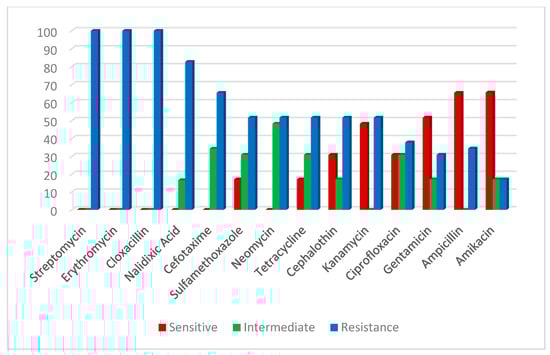 2.5. Antibiotic Susceptibility of V. parahaemolyticus and A. hydrophila Positive Strains Confirmed by Multiplex PCR Assay