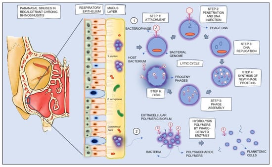 - Szaleniec, M.; Gibała, A.; Pobiega, M.; Parasion, S.; Składzień, J.; Stręk, P.; Gosiewski, T. Exacerbations of Chronic Rhinosinusitis—Microbiology and Perspectives of Phage Therapy. Antibiotics 2019, 8, 175. [Google Scholar] [CrossRef]