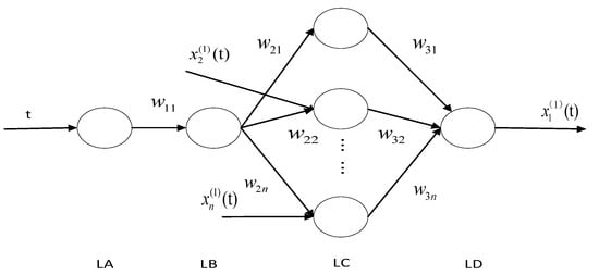 The time response equation of Equation (5) is embedded into the BP neural network with the structure shown in Figure 2, and can be written as: