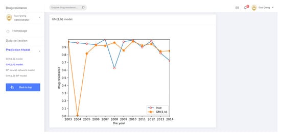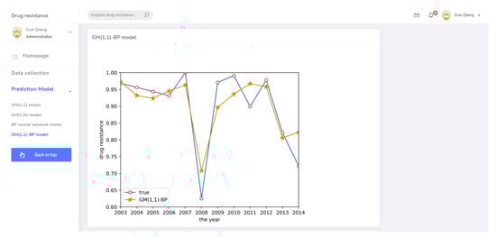 (3) Based on the theoretical demonstration of the GM(1,1)-BP neural network model, a web system for drug resistance prediction was designed and developed. Using known data, this system can predict the change process of bacterial resistance to effectively decrease the spread of bacterial resistance and provide the data support to protect animal health.