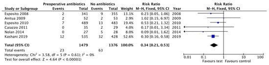 Esposito et al. 2008 [28] | Amoxicillin 2 g 1 h pre | Placebo | ||